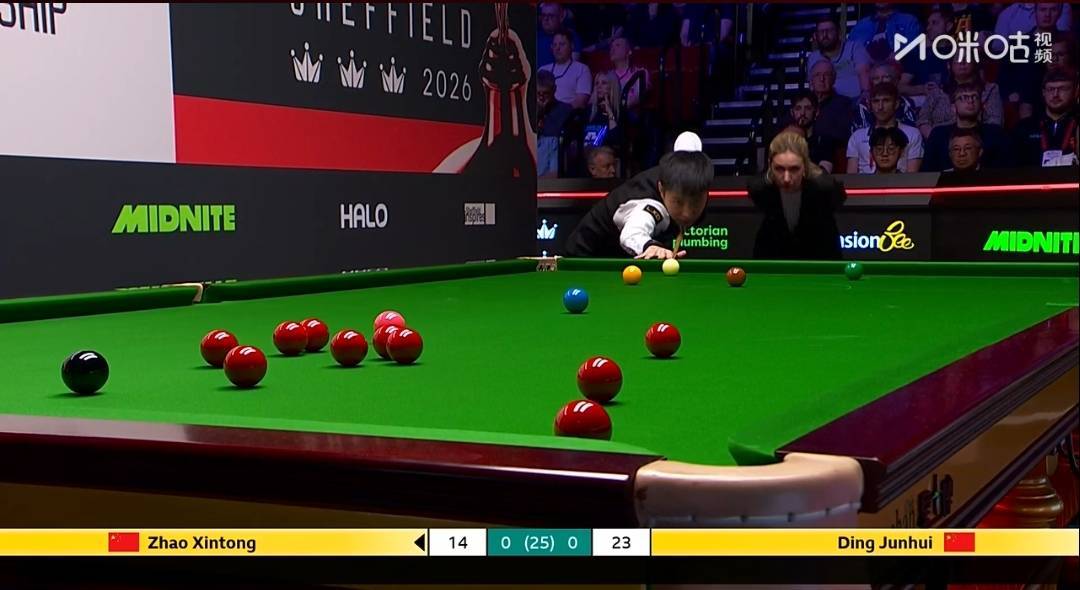 4月24日斯诺克世锦赛正赛第二轮,丁俊晖VS赵心童,第一阶段,丁俊晖79-19取得开门红!赵心童状态有些低迷!